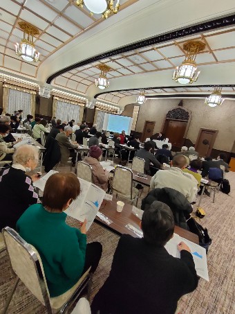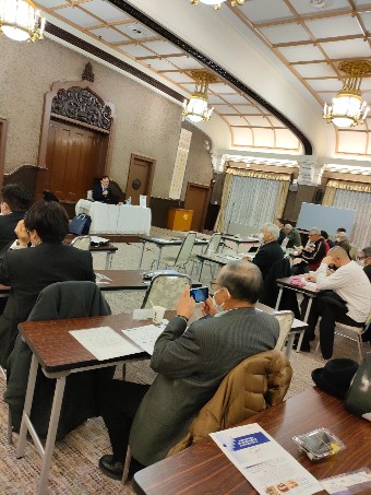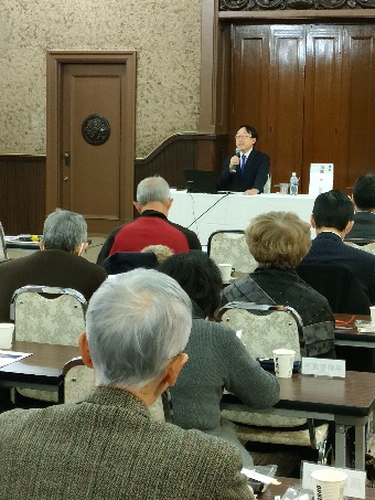 この日は、昨年12月の立石晴康名誉塾長の逝去から初めての都民塾で、冒頭、出席者全員による黙禱が行われた。