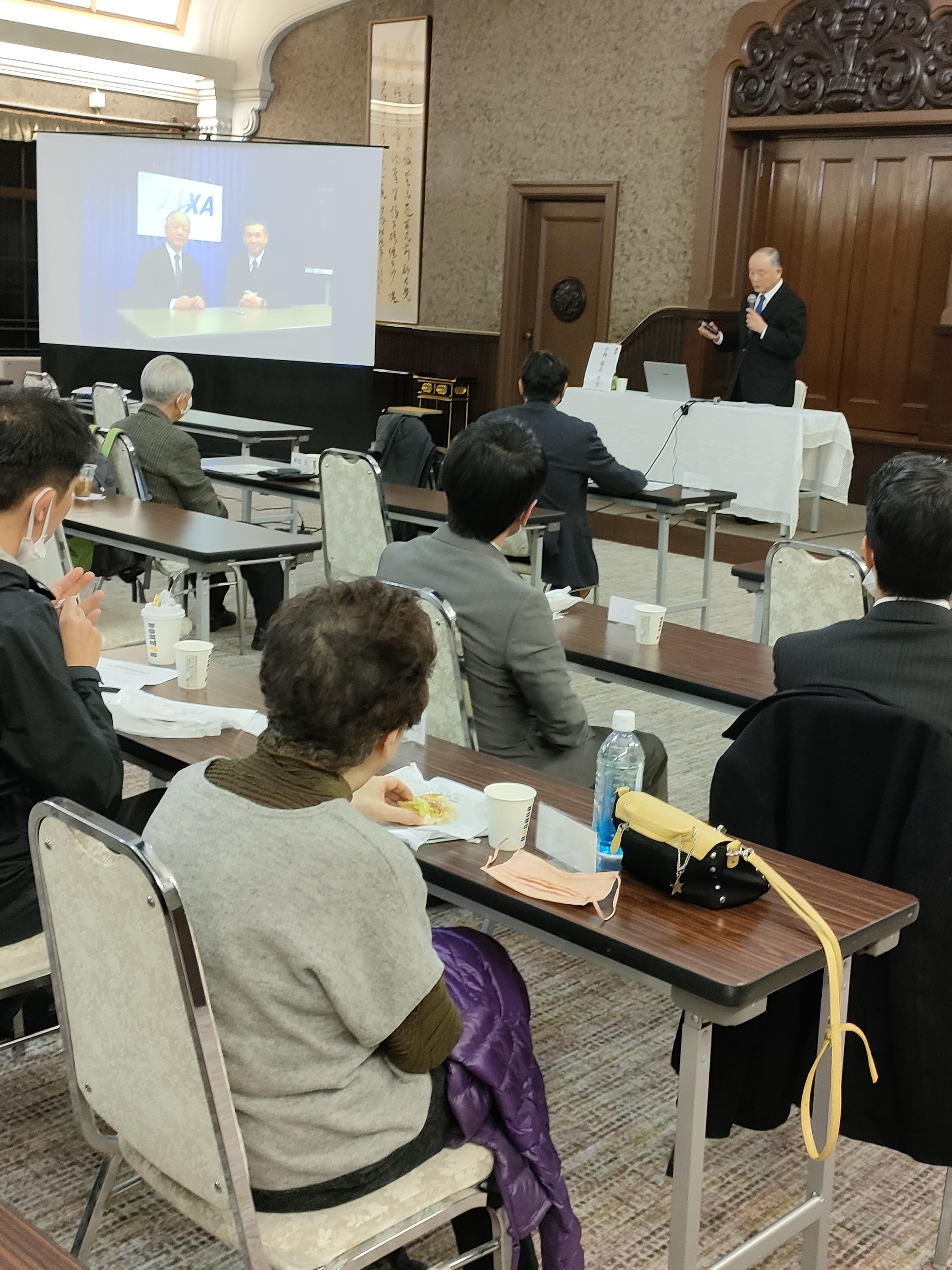小林先生は、宇宙飛行士の若田光一さんとの交流を話したあと、パイロットとして操縦席か ら地球を見て思ったことから話し出した。「かけがえのない地球の美しさ、かけがえのない人 生の大切さ、かけがえのない家族を想いました。かけがえのない、という言葉を大事にしたい」