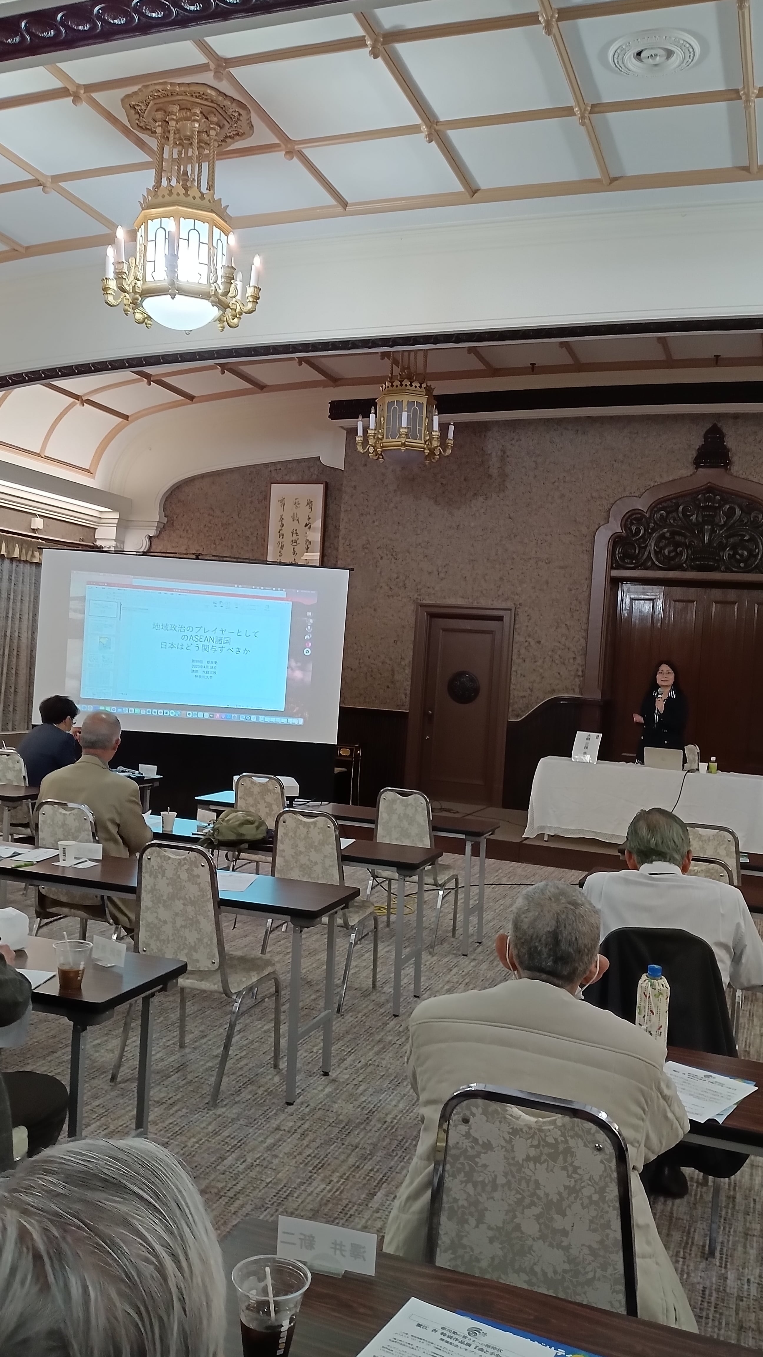 第99回都民塾(名誉塾長 立石晴康元東京都議、代表世話人 野口和久)が、令和5年4月18日(火)の午後6時半から、東京都中央区の築地本願寺2階・講堂で、神奈川大学法学部・法学研究科教授、大庭三枝(おおば・みえ)先生を講師に招き「地域プレイヤーとしてのASEAN諸国、日本はどう関与すべきか」をテーマに開かれた。
